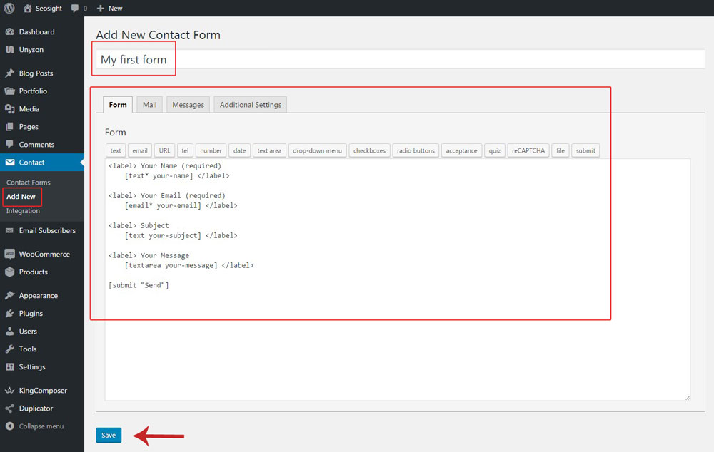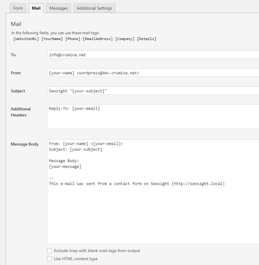 TIP: All contact forms used in Seosight demo are included in demo import. You can use them as a basis for your own forms.