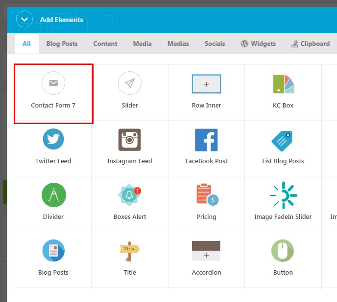 When the form is ready, add it to your page via 'Contact Form 7' shortcode in King Composer editor.