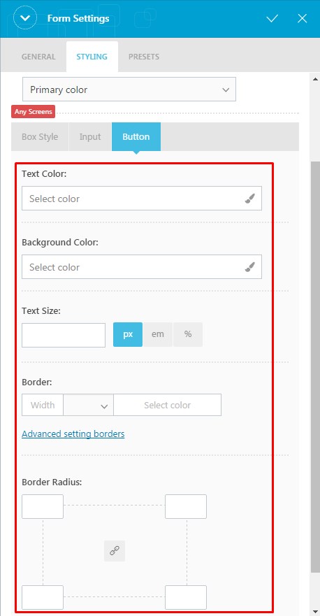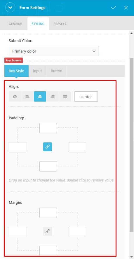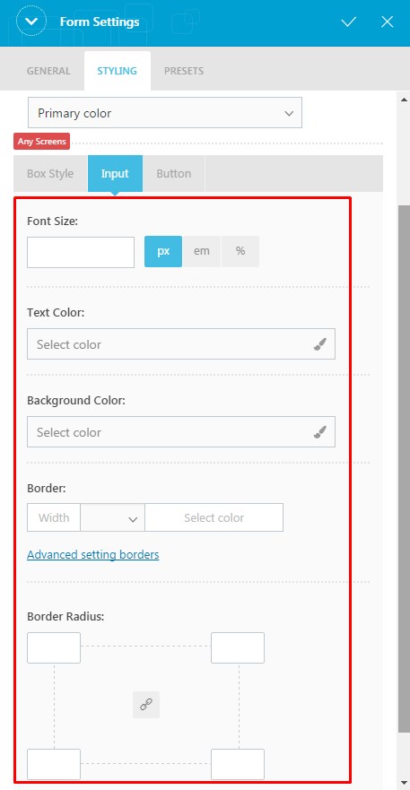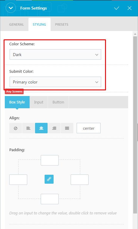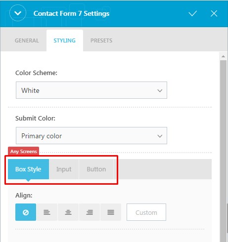 You can configure further options under Box Style, Input and Button tabs.