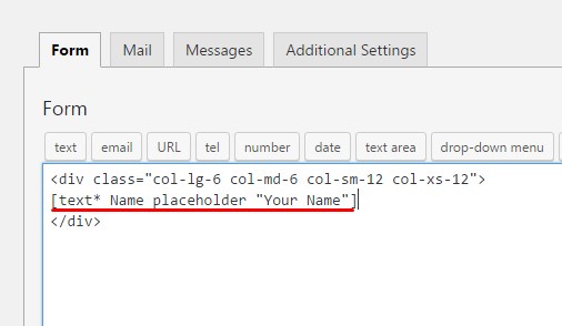 First of all add <div></div> tags with bootstrap classes, put cursor between them and add required field from the top panel.