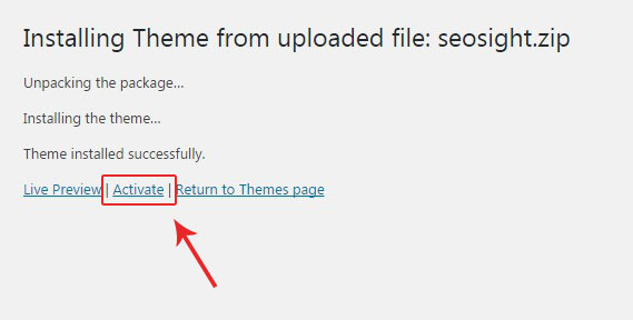 2. Unzip it and upload to the root folder of the theme ( wp-content/themes/seosight)