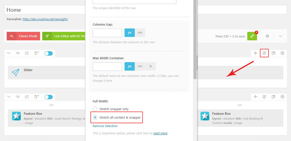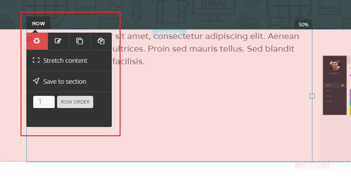 Each section has a number of options that you can customize the way you want. Click on the 'PENCIL' icon on the top right corner of the section box to open row settings.