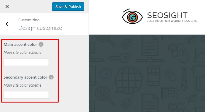 You can control primary and secondary colors of the theme in Customize>Design Customize section.