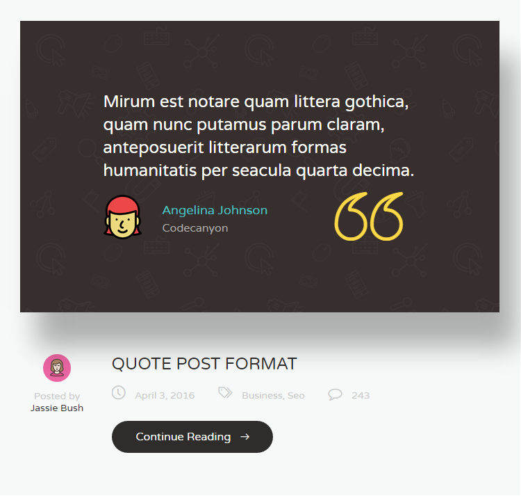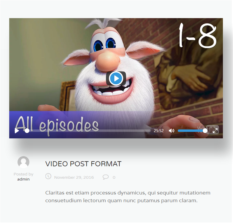 Let's overview all post formats represented in the theme: