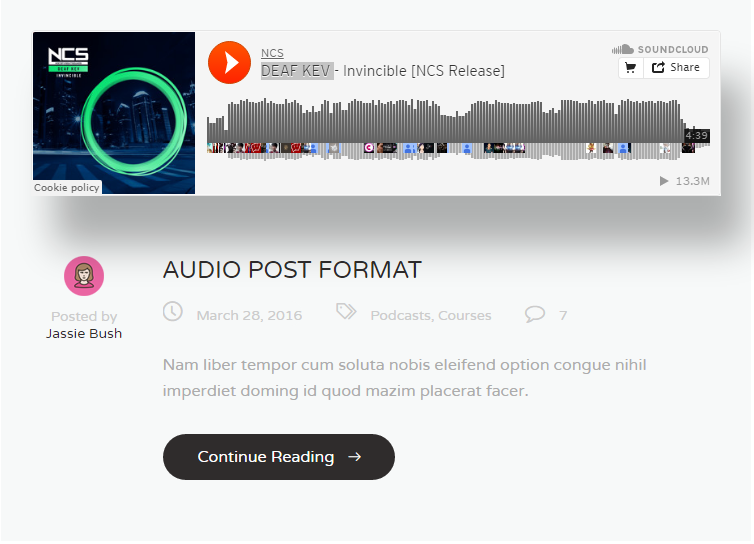 Displays audio player on your blog /category/ post page.