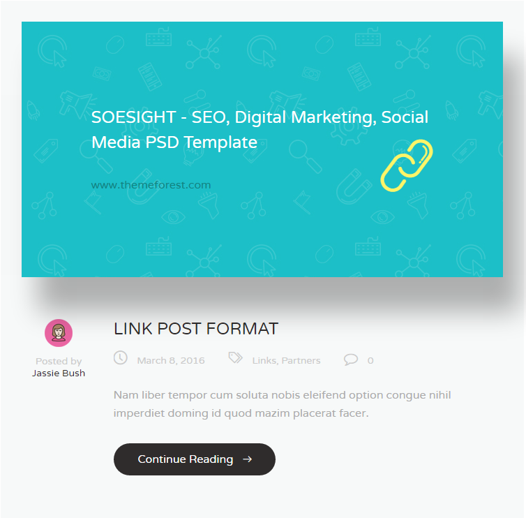 You can control your post style with 'Post Format' option. Seosight theme supports most common WordPress post formats, you can read about them here: https://codex.wordpress.org/Post_Formats