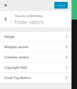 Theme options panel lets you control general settings across the site. You can reach it via Appearance>Customize menu in the backend editor or by clicking on the 'Customize' link on the top black admin bar in the frontend. Options are divided by meaning and are represented by several tabs. Let's take a closer look at them.