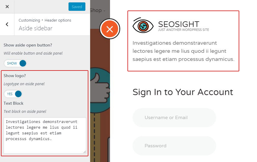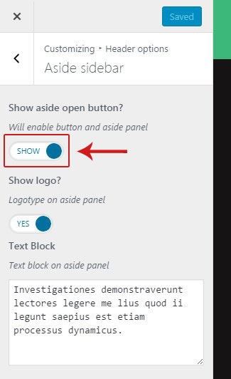 You can also activate logo and add some text that will be displayed on the top of the aside panel.