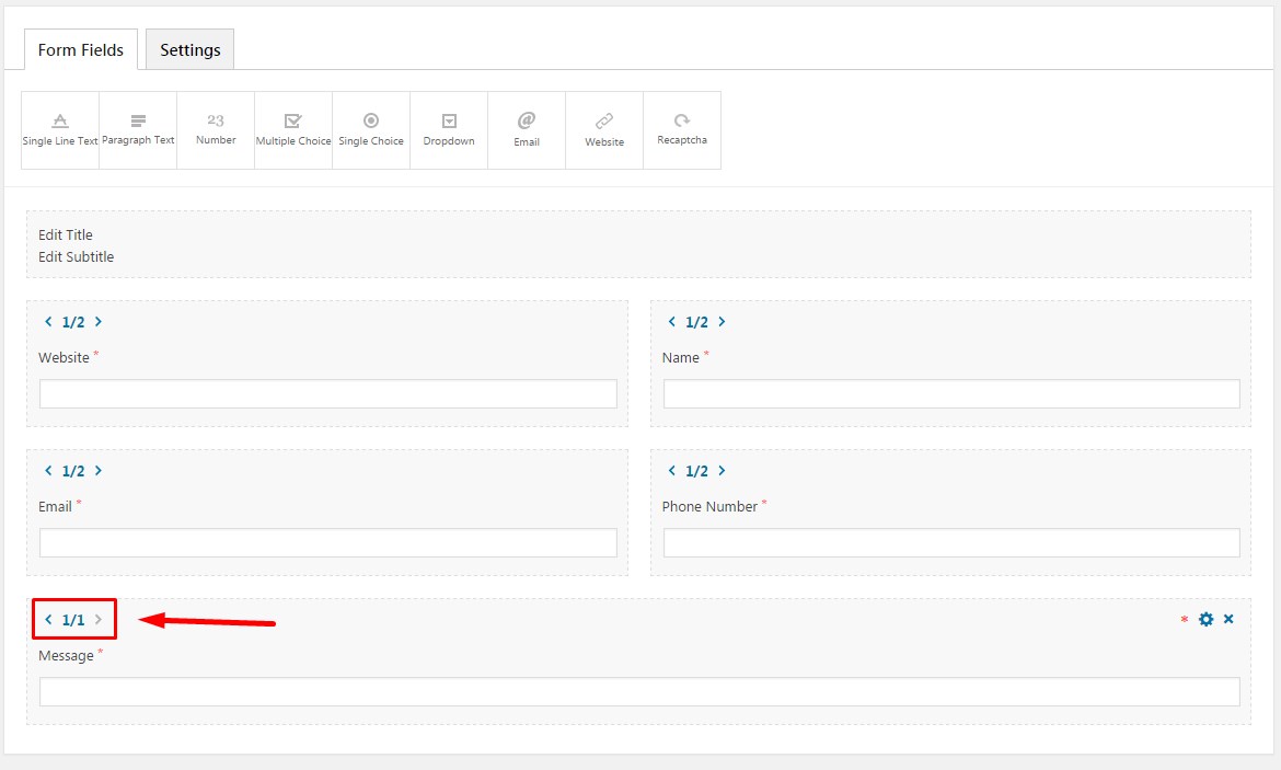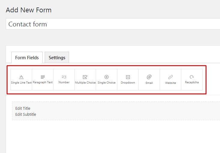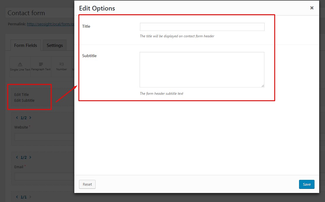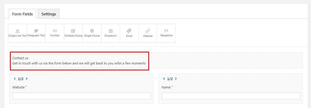 On the top of the form, you can enter title and subtitle. They will be displayed on the frontend before the form itself.