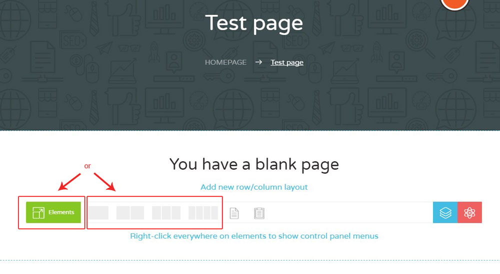 Start adding elements to your page. You can do it in two ways: