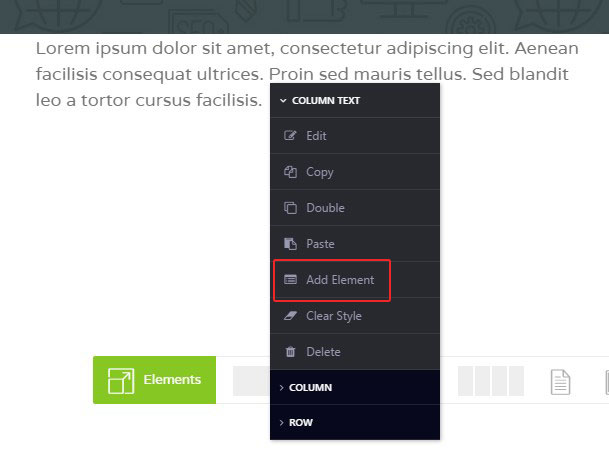 Edit/double/copy/delete options. If you need to edit, double, copy or delete the element, hover over its title on the top right corner of the element box. Below will appear navigation icons to choose.