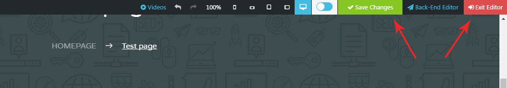 Once you finished editing the page, clikc on the 'Save changes' button and then 'Exit Editor' on the top admin bar.