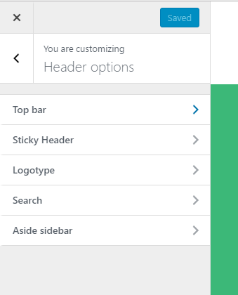 Header options are configured under Customize > 'Header options' tab. There you can adjust settings for: